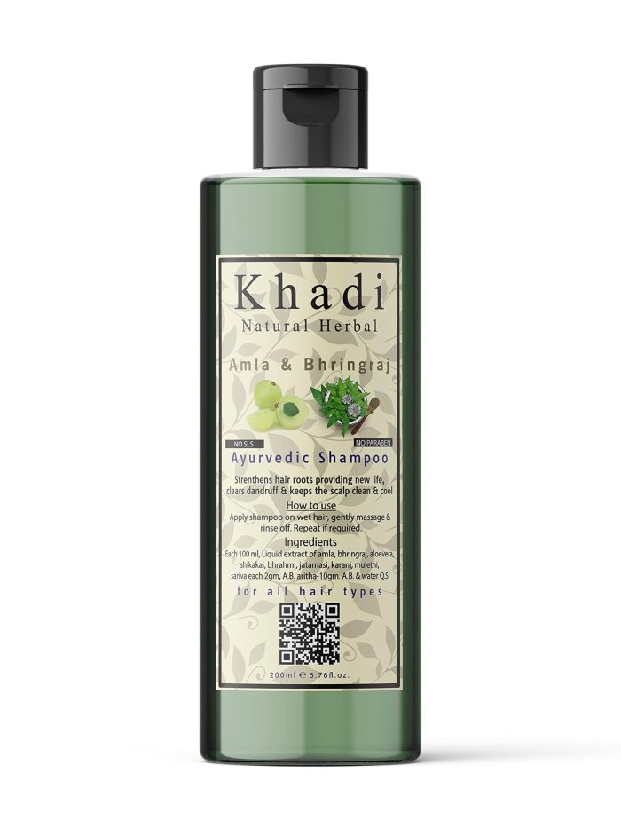 - Khadi Natural Herbal Amla And Bhringraj Shampoo infused with liquid extracts of aloevera, amla, bhringraj, mulethi, jatamasi, bhrahmi, tulsi, karanj and shikakai.