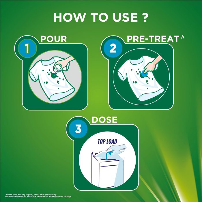 - Ariel Matic Liquid comes with a unique cap design which ensures zero spillage and easy dosing