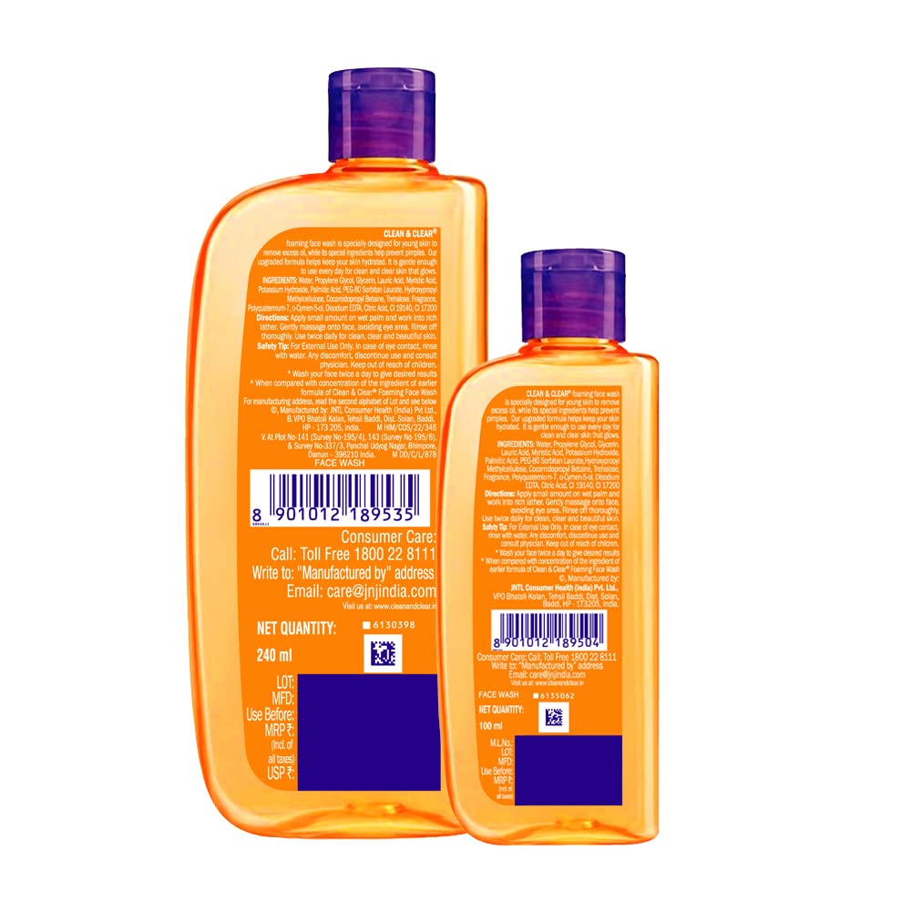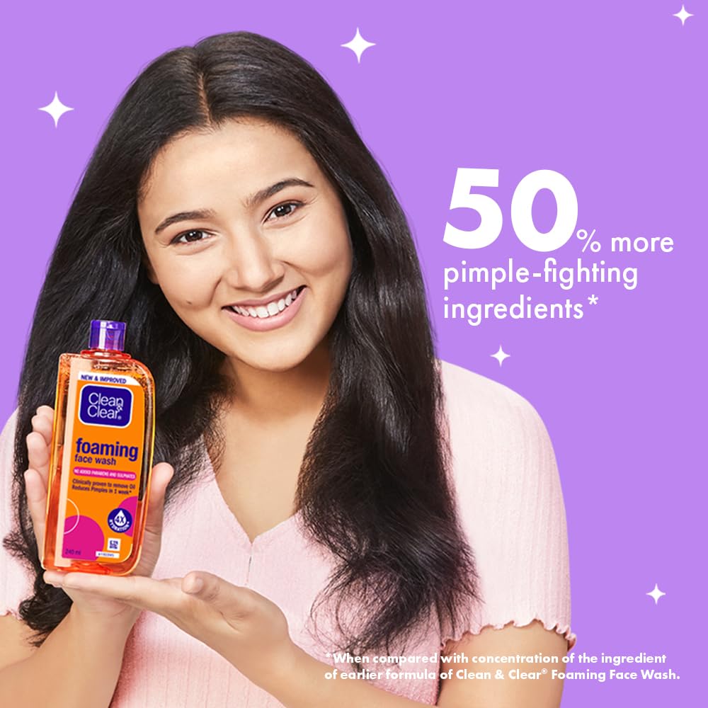 Home Shop Other Products Clean and Clear Foaming face wash for oily skin, removes 99.8% pimple causing germs, Home and travel combo pack offer- Buy 240ml Get 100ml Free