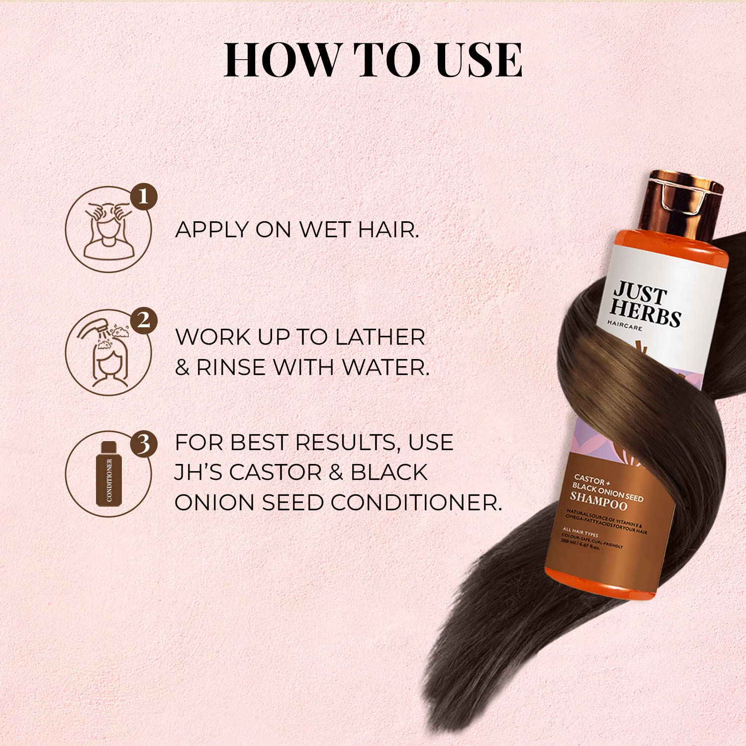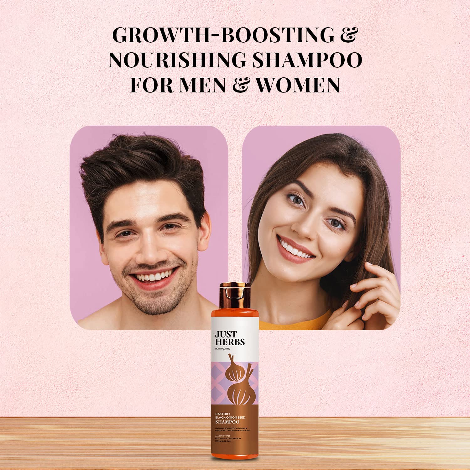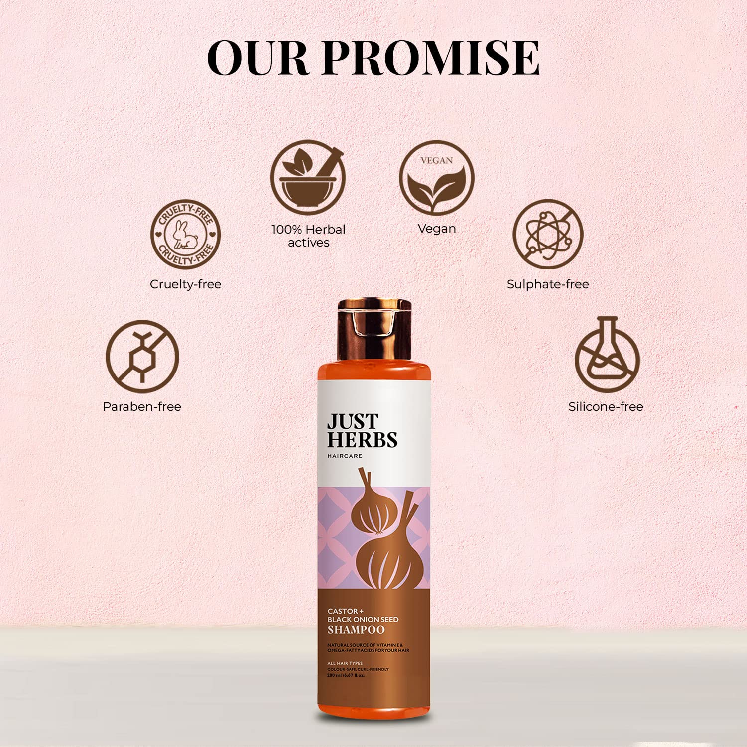 Just Herbs Castor and Black Onion Seed Sulfate Free Shampoo Reduce Hairfall,Hair Loss For Dry and Frizzy, Normal Hair Types Men and Women – 200ml