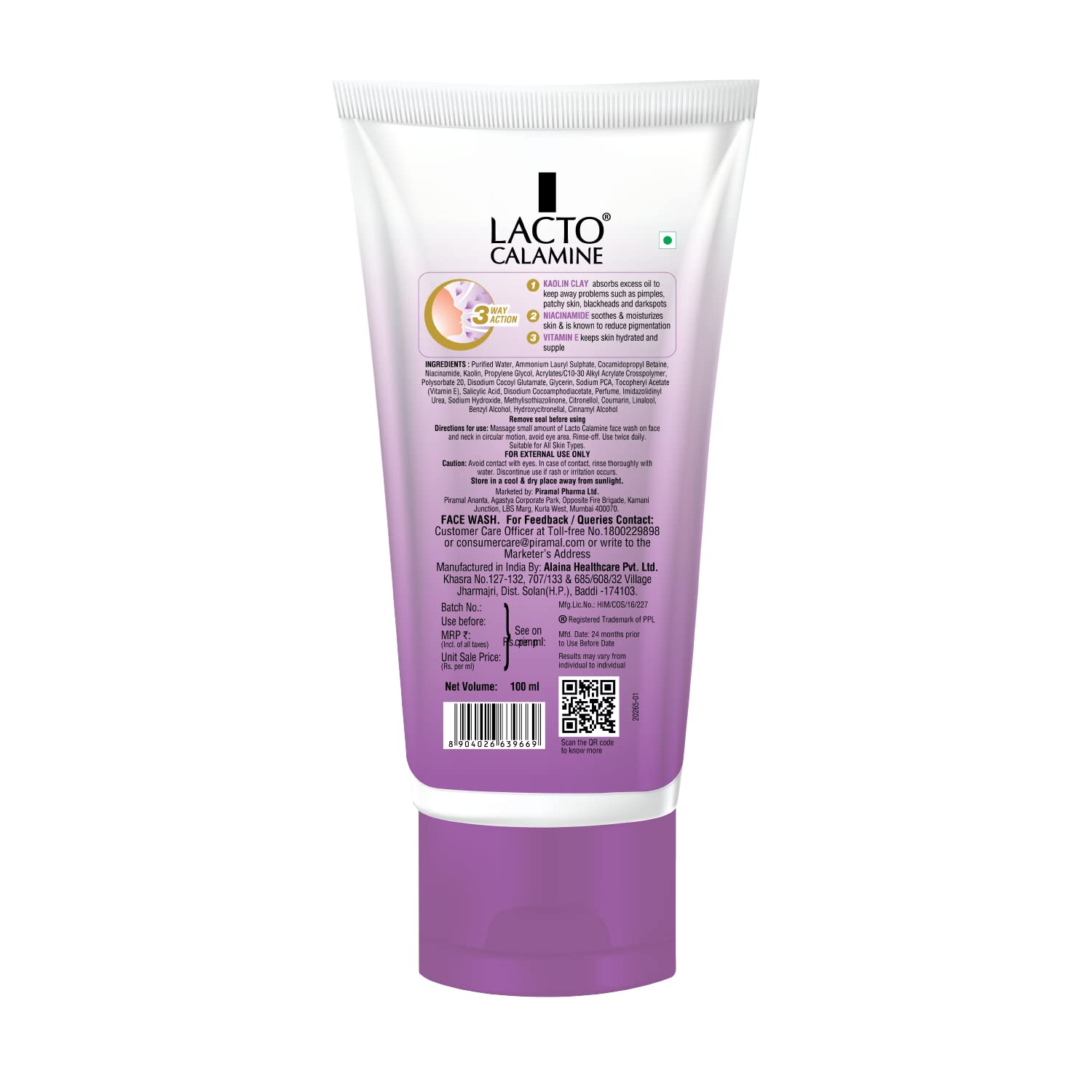 Lacto Calamine Face Wash is powered with Kaolin Clay, Niacinamide and Vitamin E. The product deep cleanses and removes dirt from frace to keep away pimples, blackheads and whiteheads |
